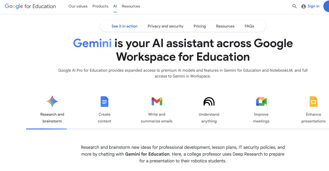反不雅美国,的脚色次要是搭策框架、供给资金支撑取搭建激励平台,一方面,美国教师AI培训更多由企业、高校取平台配合供给图片来历于谷歌、微软官网截图